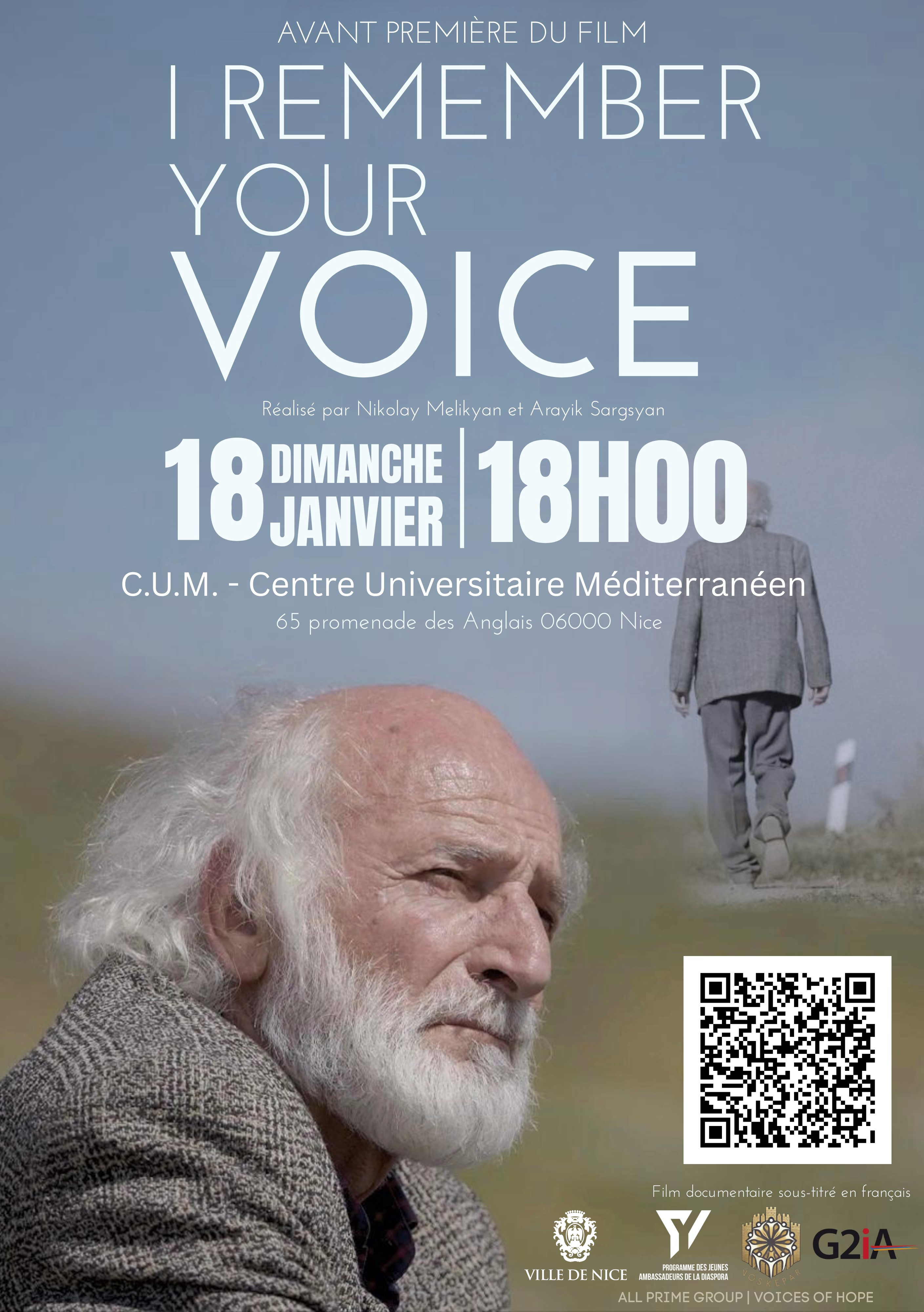 Dimanche 18 janvier à 18h Avant première du film - "I REMEMBER YOUR VOICE"